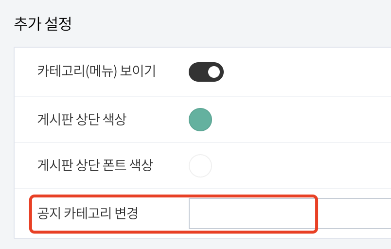 참고로 공지 카테고리는 게시판에서만 표시되는 부분으로, 실제로는 카테고리가 존재하지 않습니다.